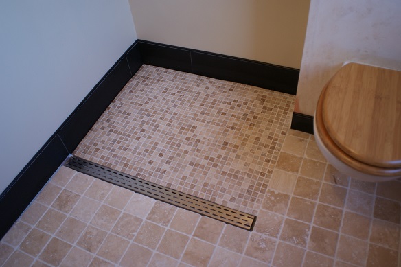 Een nieuwe vloer van travetin tegeltjes in Utrecht.