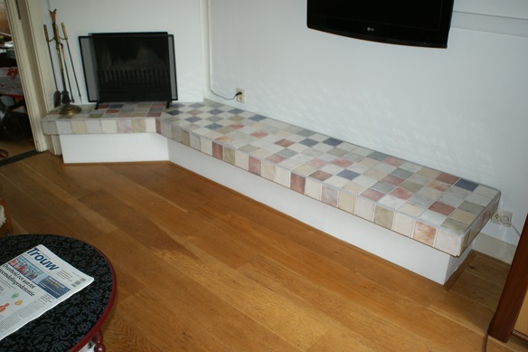 Tegelwerk en plaatsing van een nieuwe pot op een oude gebarsten granito-vloer in Maarssen.