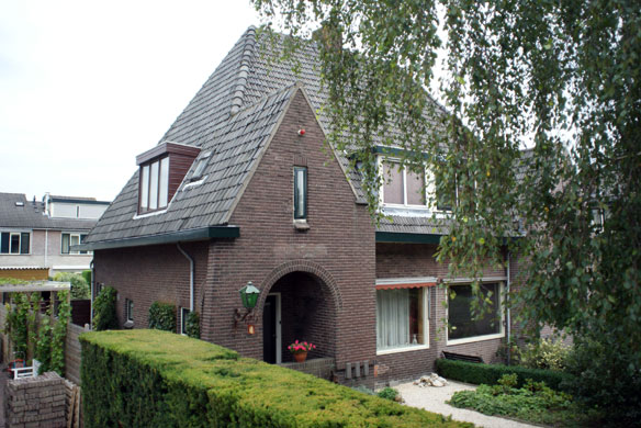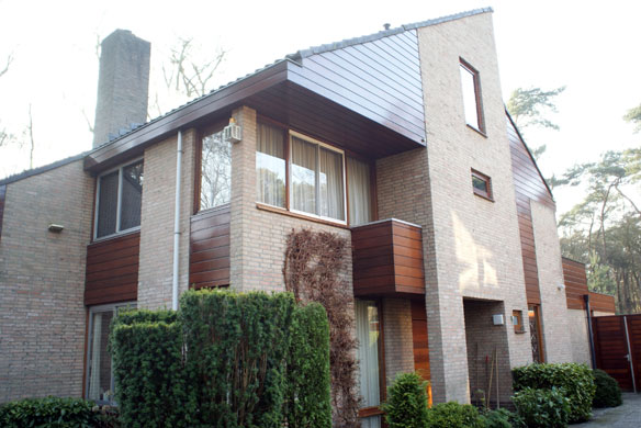 Dat decoratieve golfje in 2 kleuren zit in totaal op dik 40 meter op alle dakgoten, boeiboorden en dakkapellen van deze jaren 30 woning.