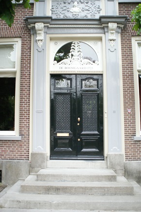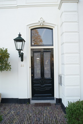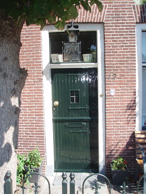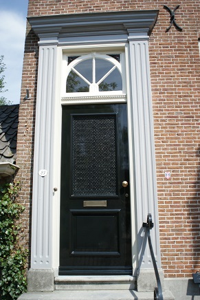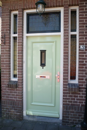Een originele kleur voor een voordeur, van een woning in Baarn. |