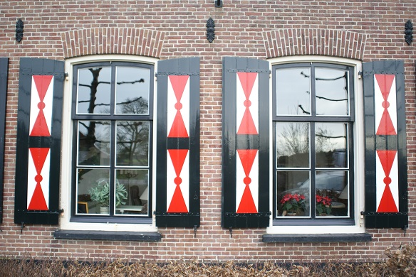 Tijdrovende vakverdeling in drie kleuren op luiken in Westbroek. Nog 14 luiken te gaan! |