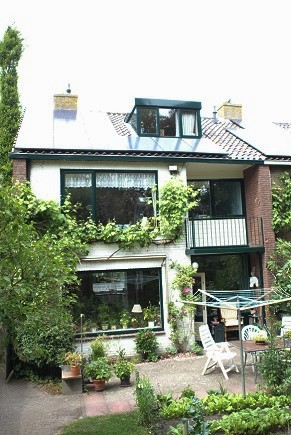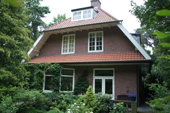 Dakkapellen, dakgoot en boeiboord in donkergroen op het zuiden hebben het zwaar.